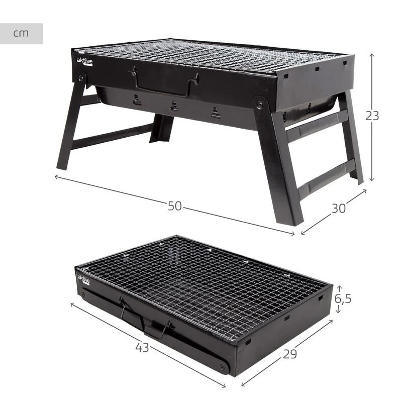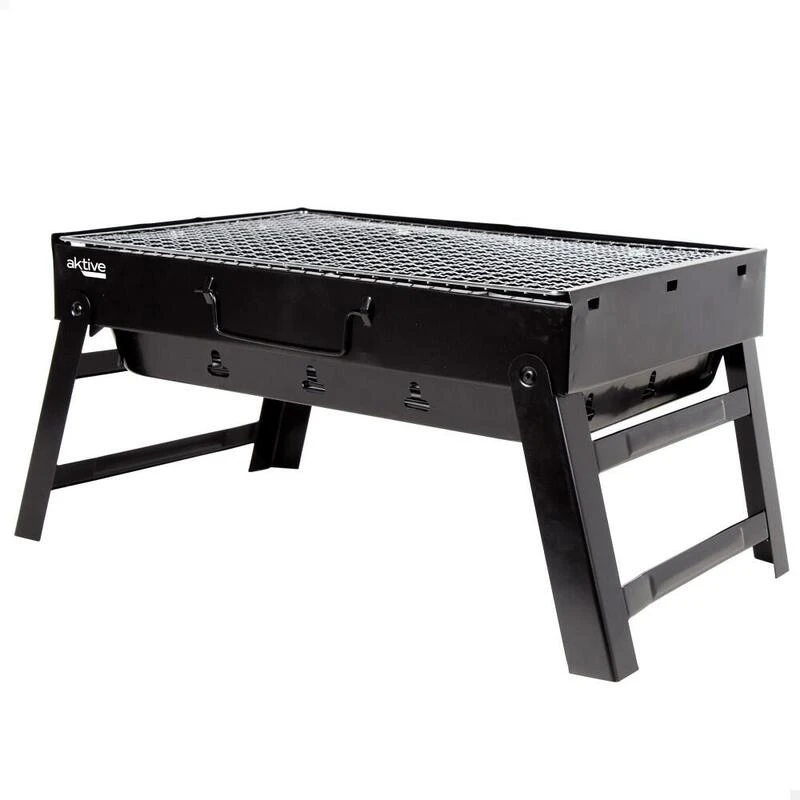 Barbecue Portable Rectangulaire Pliable Noir 50x30x23 Cm Aktive