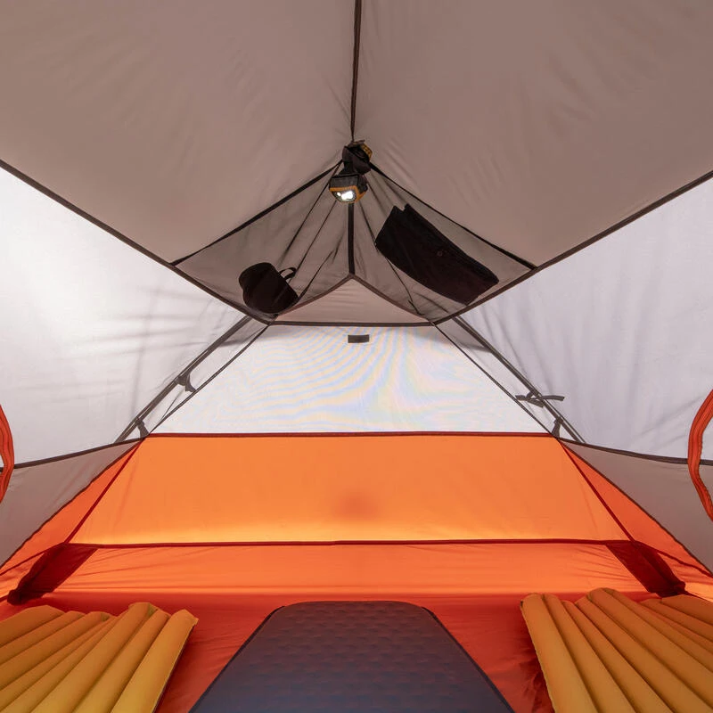 Afin de limiter la condensation à l’intérieure de la tente, celle-ci doit être correctement montée, toiles tendues, sans excès. Zips double-curseur sur les portes pour les maintenir ouvertes. L’utilisation des ventilations et une bonne circulation de l’air limitent l’humidité à l’intérieur